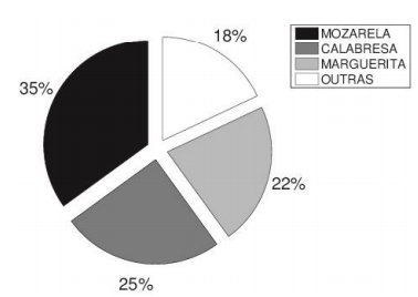 A pizza é, sem dúvida, o alimento preferido de muitos paulistas. Estima-se que o consumo diário no Brasil seja de 1,5 milhão de pizzas, sendo o Estado de São Paulo responsável por 53% desse consumo. O gráfico abaixo exibe a preferência do consumidor paulista em relação aos tipos de pizza.