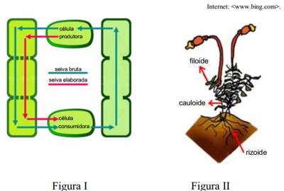 Os vasos referidos no texto são o xilema, que transporta essencialmente água e sais minerais, e o floema, que transporta água, compostos orgânicos e sais minerais.