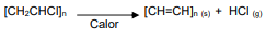 – Os plásticos constituem um dos materiais mais utilizados no nosso cotidiano. Em aterros sanitários municipais, os filmes de policloreto de vinila (PVC) são os mais encontrados, devido a sua ampla utilização em produtos domésticos. O PVC é um material instável em relação ao calor e à luz e se degrada a temperaturas relativamente baixas, de acordo com a reação abaixo.