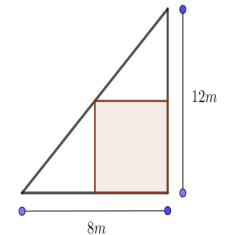 O professor de educação física de uma pequena escola resolveu construir um campo de futebol. Ele observou que na escola existia um terreno no formato de triângulo retângulo de catetos com medidas 8 m e 12 m. O professor projetou o campo conforme a figura a seguir.
