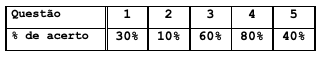Ao final da correção, produziu-se a seguinte tabela, contendo a porcentagem de acertos em cada questão: