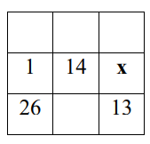 Em um quadrado mágico, a soma dos números de cada linha, coluna ou diagonal é sempre a mesma. No quadrado mágico a seguir, o valor de x é: