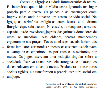 Infere-se do texto que, por ser altamente hierarquizada, a sociedade feudal excluía das atividades festivas a maior parte da população, a quem restava participar das cerimônias religiosas e, muito raramente, de entretenimento que envolvesse apostas.