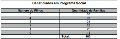 Ao realizar o levantamento das famílias de uma pequena cidade do interior, cujos filhos são beneficiários de algum programa social, um pesquisador obteve os seguintes dados: