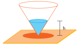 O material que constitui a esfera, ao passar para o estado líquido, não altera seu volume. A superfície livre do líquido atinge uma determinada altura h em relação à base de apoio do recipiente. Observe: