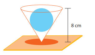 Um recipiente com a forma de um cone circular reto, de altura igual a 8 cm, contém apenas uma esfera cujo raio mede 3 cm. Essa esfera tangencia tanto a superfície lateral como a base do cone, conforme ilustra a figura abaixo.