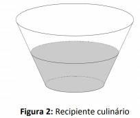 Um recipiente de uso culinário com 16 cm de altura possui o formato de um tronco de cone reto (conforme ilustra a Figura 2) e está com água até a metade da sua altura.