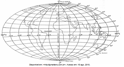 A seguinte figura representa algumas linhas de latitude e longitude da Terra.