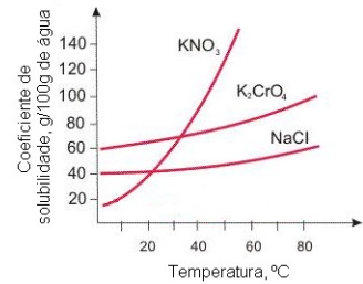 A figura abaixo representa a curva de solubilidade de alguns sais.
