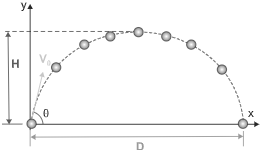A figura representa a trajetória descrita por um projétil lançado obliquamente com velocidade inicial