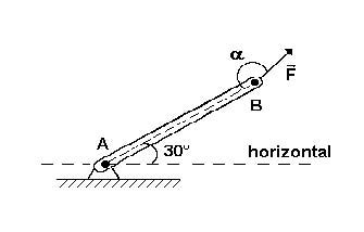 A figura a seguir, mostra uma barra homogênea AB, articulada em A, mantida em equilíbrio pela aplicação de uma força