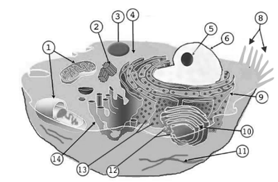 III. A estrutura numerada 10 atua na modificação e na distribuição de produtos celulares, sendo mais desenvolvida em células secretoras.