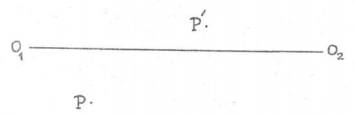 A figura mostra um ponto objeto P e um ponto imagem P', conjugado por um espelho convocado de eixo O₁O₂.