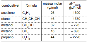 Na tabela são apresentadas as entalpias de combustão de alguns combustíveis.