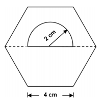 Na figura acima, tem-se um hexágono regular de lado 4 cm, a partir do qual foi retirado um semicírculo de raio 2 cm. Nessas condições, a área da parte restante, em cm², é igual a