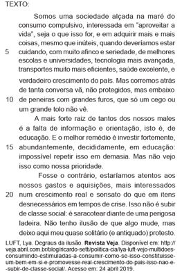 O uso da primeira pessoa do plural, em “Somos” (l. 1) invalida a crítica da articulista, já que ela acaba se inserindo no que está avaliando.