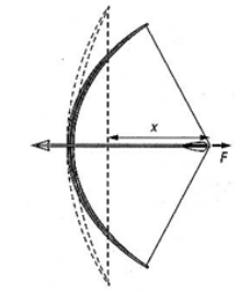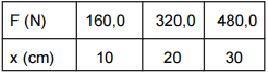 Num experimento, medimos a força F necessária para tensionar o arco até uma certa distância x, obtendo os seguintes valores: