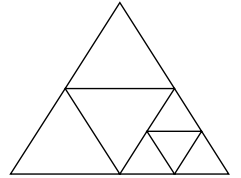 Um triângulo equilátero pode ser recortado em triângulos equiláteros menores. A figura abaixo mostra como recortar um triângulo equilátero em 7 triângulos equiláteros. Mostre como recortar um triângulo equilátero em 20 triângulos equiláteros menores.