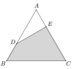 Sabendo que a área do triângulo ABC é igual a 162 cm², qual é a área, em cm², do quadrilátero sombreado?