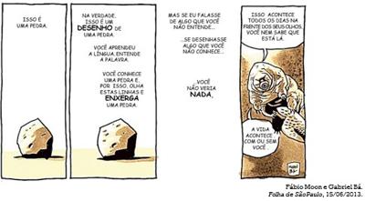 No último quadrinho, formula-se uma analogia moral, quando se sugere que não é possível ver tudo o que acontece à frente dos olhos.