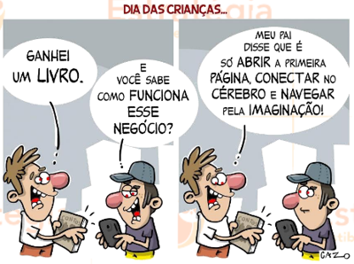 ironizar o desconhecimento dos jovens sobre livros.