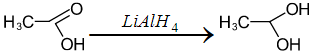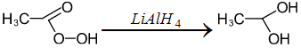 O vinagre é uma solução presente na culinária mundial, cujo constituinte que lhe confere o sabor é o ácido acético. Esta substância orgânica não possui tendência de sofrer reação de oxidação ou redução. Entretanto, na presença do oxidante H₂O₂, pode oxidar-se a per-ácido. Já na presença de redutores específicos como o hidreto de lítio e alumínio, pode ser reduzido a mono-álcool primário. Além de ser obtido por fermentação, o ácido acético também pode ser sintetizado a partir do aldeído acético. Assinale a alternativa que representa a equação CORRETA de uma das reações citadas acima.
